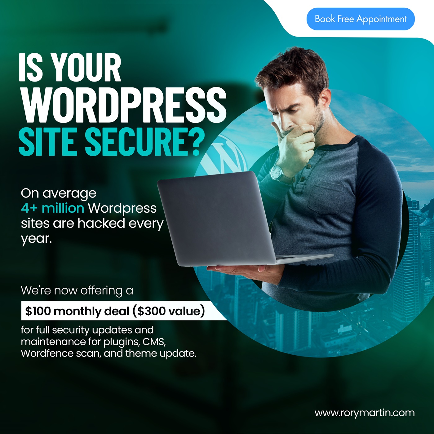 Book a free appointment call so we can keep your website up to date an secure from Malware attacks.